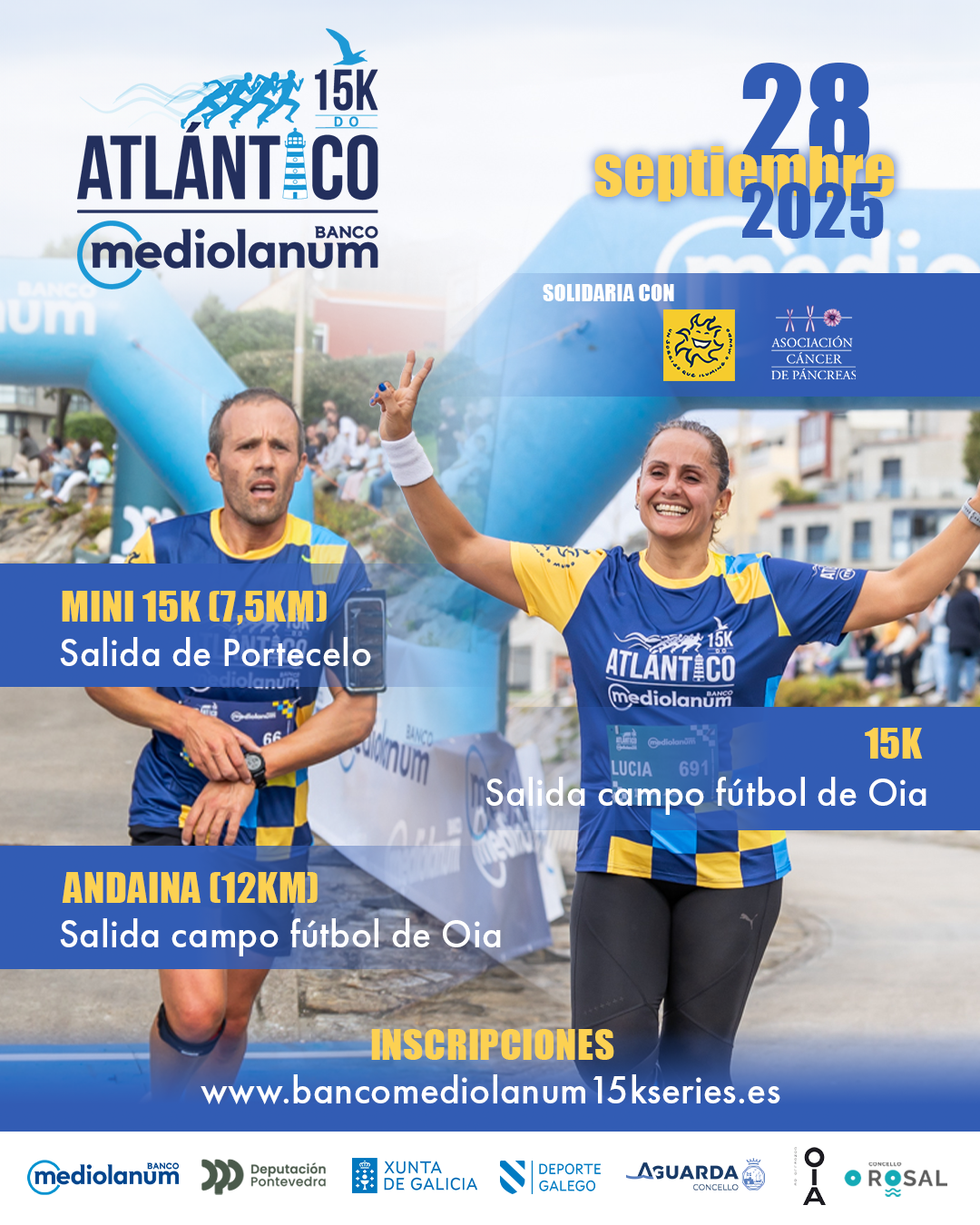 El próximo domingo 28 de septiembre celebramos en los aytos de Oia, O Rosal y A Guarda la la XII edición de la 15k del Atlántico Banco Mediolanum.
